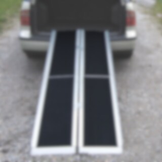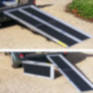 Robust aluminiumsrampe som passer både våre tre- og firehjulte kjøretøy. Den kan brukes i to deler eller som en enkel bred rampe. Kan legges sammen og bæres med praktiske håndtak. - Mål(LxB): 180cm x 74cm - Vekt/stk: 7 kg - Sammenleggbar med håndtak - Grip-vennlig overflate - Passer til større kjøretøy