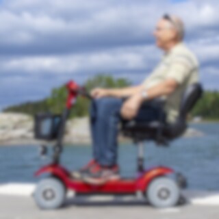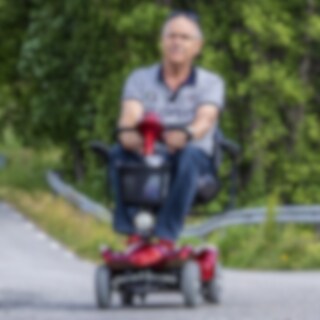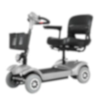 Liten og smidig firehjulet elektrisk rullestol som passer bra til hverdagslige aktiviteter i nærområdet.