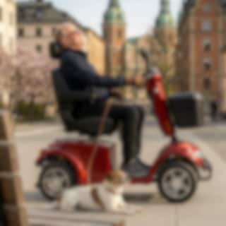 God klaring til bakken og kraftige hjul med individuell fjæring gjør at denne elektriske rullestolen takler de fleste underlag. Samtidig er det lov å bruke modellen i butikken.