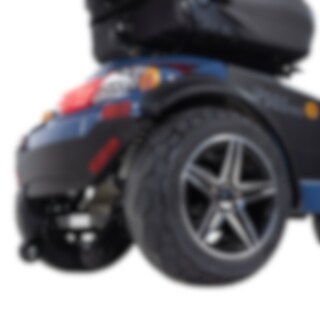 Med store luftfylte dekk (14" foran og 16" bak) og demping både foran og bak, kommer X-1400 Premium seg lett frem selv på ujevnt underlag som grusveier og fortauskanter. Den har både automatisk brems og hydraulisk håndbrems som gir trygg og jevn oppbremsing. Du kan veksle mellom lav og høy hastighet etter behov, og den trinnløse hastighetsreguleringen gir smidig og tilpasset kjøring.