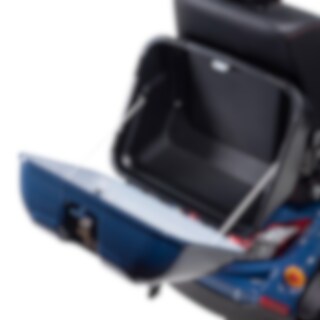 X-1400 Premium har et moderne og gjennomtenkt design med fokus på komfort. Det brede setet er trukket i slitesterkt materiale med dekorative røde sømmer og har innebygd setevarme – perfekt på kjølige dager. Setet kan justeres i flere retninger (frem/bak, høyre/venstre og vippes), slik at du enkelt finner en optimal sittestilling. Scooteren er også utstyrt med koppholder, mobilholder og en praktisk oppbevaringsboks bak med lås.