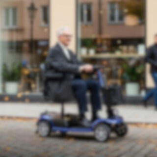 Liten og fleksibel firehjuls gåscooter med litiumbatteri og solide dekk som egner seg godt til å løpe ærend i nærområdet.