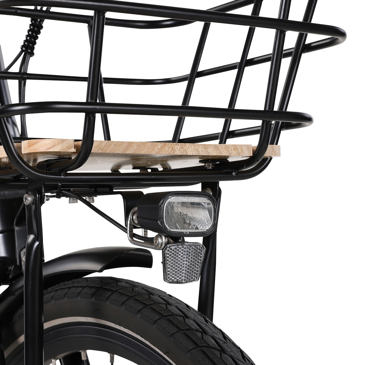 City-3 er en pålitelig og brukervennlig elsykkel med fotbrems, kurv og tre gir, perfekt for smidig sykling i hverdagen.