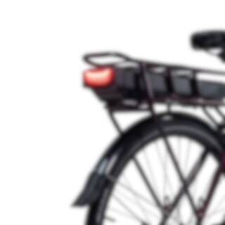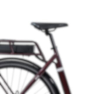 Litiumbatteriet er plassert på bagasjebrettetog kan lades enten på sykkelen eller tas av for lading et annetsted.