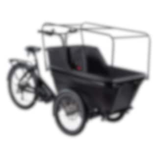 Den romslige kassen er laget av EPP – et lett, slitesterkt og værbestandig materiale som tåler nordisk klima. Inni er det plass til to barn, som sitter trygt med trepunktsbelter. Kassen leveres med bøyler og fester slik at du enkelt kan montere et kalesje (tilbehør) for å beskytte lasten mot vær og vind.
