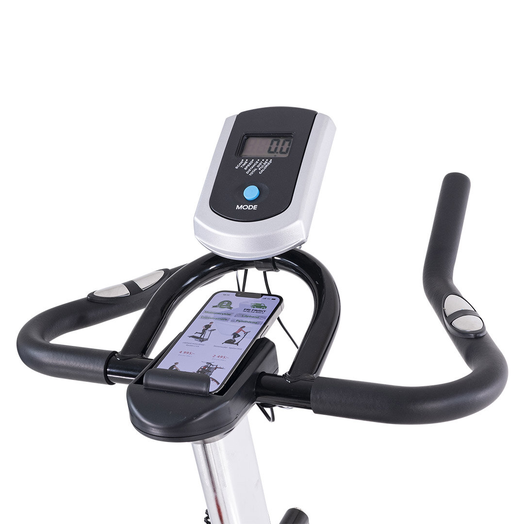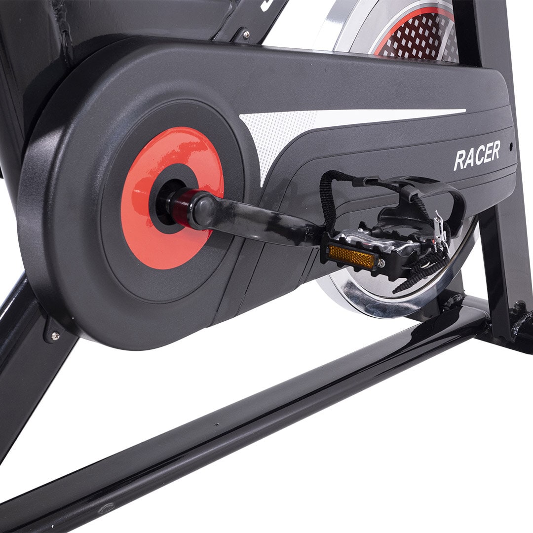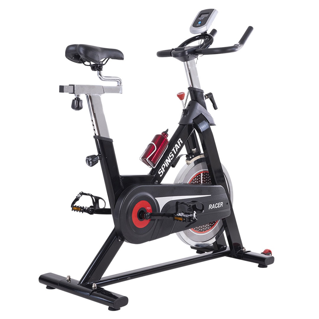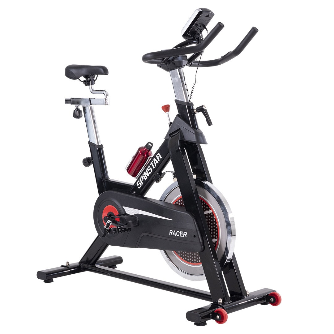 Spinstar Racer er en robust spinningsykkel med et 18 kg tungt svinghjul. Modellen har en sterk stålramme som sammen med det store svinghjulet gir en intensiv trening. Pedaler med kurv inkludert, samt hjertefrekvensmåler.