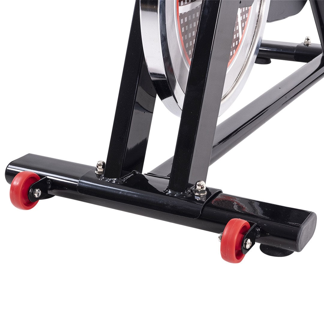 Modellen har en sterk stålramme som sammen med det store svinghjulet gir en intensiv trening. Maks belastning for brukere er 125 kg. Pedaler med tåklips til føttene er inkludert, samt hjertefrekvensmåler. Hjul i hardgummi befinner seg på forsiden av støttebenene for å enkelt rulle ut spinnsyklusen etter treningsøkten.
