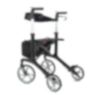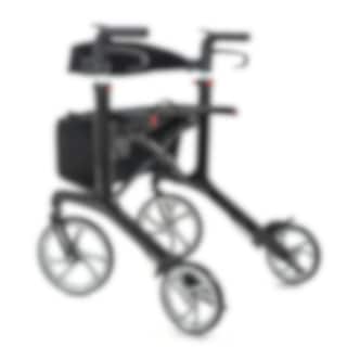 Denne designen inkluderer også en praktisk veske som henger foran på rullatoren, samt et avtakbart ryggstøtte som gjør det behagelig å sitte på puten og ta pauser under turen. Hvis du vil ha rullatoren med på reisende fot, kan den lett brettes til et veldig kompakt format uten verktøy.