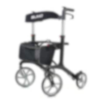 Fleksibel og godt bygget lettvekt for rullator som fungerer godt både innendørs og utendørs på finere veiforhold. Blimo rollator Carbon har en karbonfiberramme og hjul i en gummiblanding som gir en balansert kombinasjon av holdbarhet og grep. Håndtakene er justerbare i høyden for å kunne tilpasse brukere med forskjellige lengder. De grepvennlige håndtakene har bremsekontroller som også kan låses som parkeringsbrems.