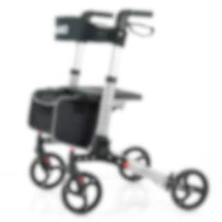 I denne modellen inngår det også et avtagbart rygglen som gjør det komfortabelt å sette seg på setet og ta pauser under turens gang. Naturligvis finnes det også en mulighet for parkeringsbremse på håndbremsen slik at rullatoren står stille når du sitter. Vil du ta med deg rullatoren på reisende fot så legges den enkelt sammen til et veldig kompakt format uten verktøy. Blimo Rullator Flex har en sammenleggbar ramme i to steg, noe som gjør den ultrakompakt i sammenlagt posisjon.
